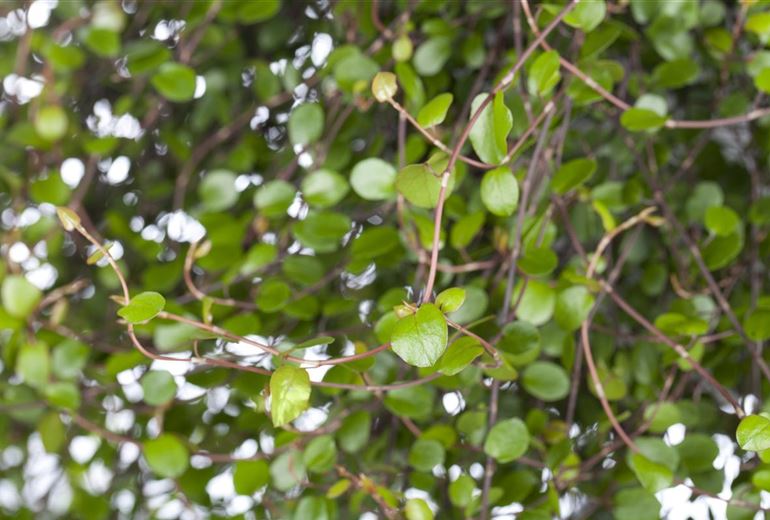 Im Garten ist die Mühlenbeckia vielseitig einsetzbar. Ob als rankende Ampelpflanze oder dekorativem Bodendecker, die kleinen ovalen Blätter sind im Garten ein attraktiver Hingucker.