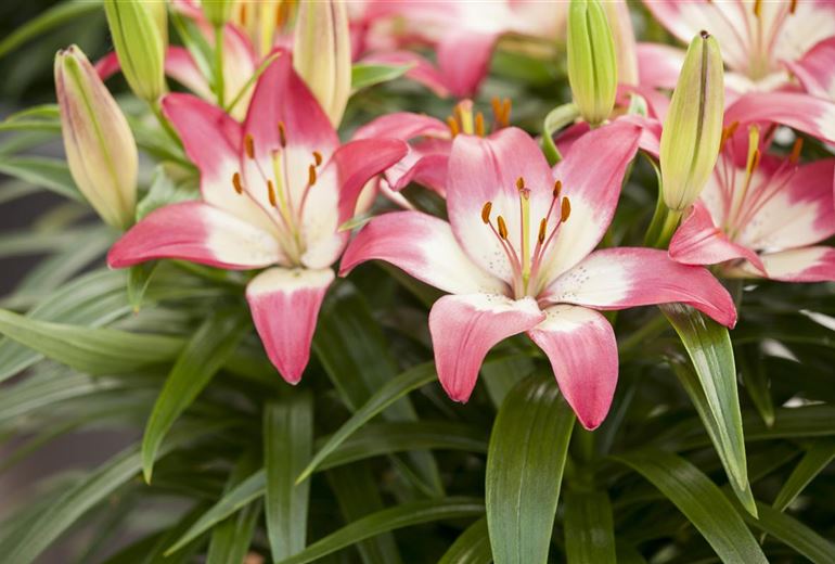 Auf die Blütenteppiche im Spätwinter folgen Frühlingsblüher wie Tulpen, Narzissen und Märzbecher. Auch sie erfreuen schon vor dem kalendarischen Frühling mit ihren bunten Blütenköpfen. Über einige Monate zieren sie den Garten mit ihrer Farb- und Formenvielfalt, bis sie sich zurückziehen und den Weg für die Sommerblüte freimachen. Gepflanzt werden Frühlingsblüher im Herbst. Zwischen Frühjahr und Sommer gedeiht der prächtige Verwandte von Speisezwiebel und Schnittlauch. Zierlauch überzeugt mit teils riesigen Blütenbällen, an denen man einfach nicht vorbeischauen kann. Mit diesem dominanten Auftreten ist er ein absoluter Blickfang in jedem Staudenbeet. Kombiniert mit Prachtkerzen, Salbei oder Veronica ergibt sich ein herrliches Bild im Sommer. Aber der Sommer hat noch viel mehr Farbe zu bieten.