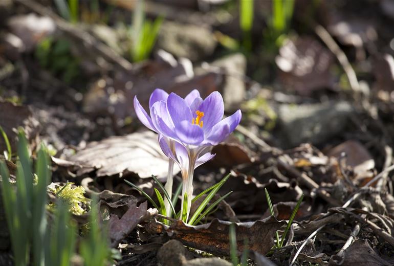 Blumenzwiebeln sind Speicher- und Überdauerungsorgane, die von Niederblättern oder Schalen geschützt werden. Dadurch halten sie auch Frostperioden stand. Die so genannten Geophyten recken ihre Köpfe als erste aus dem Boden und bringen schon im ausgehenden Winter Farbe in den Garten. Ob Krokus, Schneeglöckchen, Traubenhyazinthe oder Winterling – sie haben keine Scheu vor Schnee und Kälte. Während andere Pflanzen im Winterschlaf liegen, locken sie die ersten Frühlingsgefühle hervor.