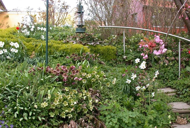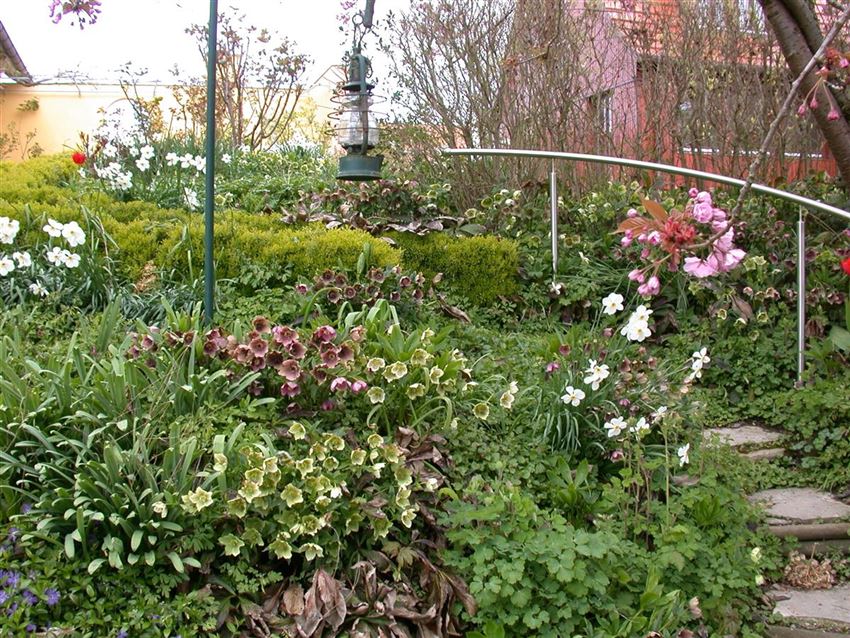 Klassisch stehen im Cottage Garden Clematis, Rittersporn, Fingerhut, Nachtkerze, Iris, Mohn, Dahlien, Lupinen, Calendula, Veilchen, Margeriten, Vergissmeinnicht aber auch alle blühenden Kräuter. Alle Zwiebelgewächse, wie die Küchenzwiebel, Knoblauch, Tulpe und Co., aber auch Zierlauch, Frauenmantel und Akelei.