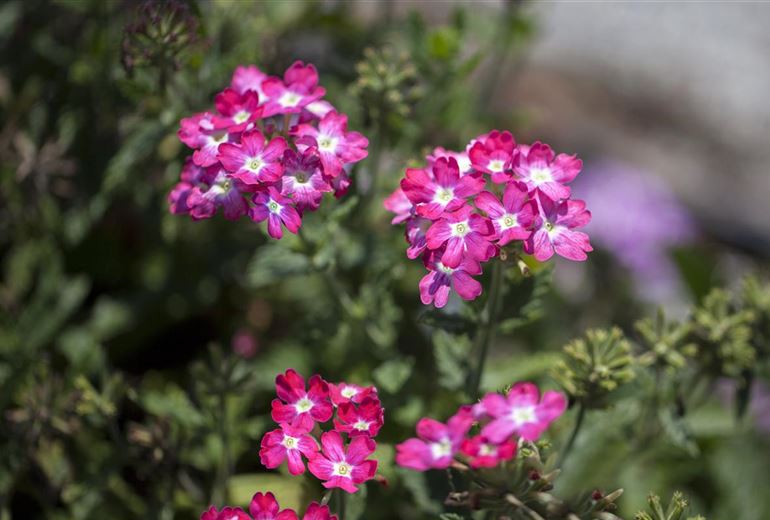 Die Verbene gehört zur Familie der Eisenkrautgewächse und ist in den eher sonnigen Gebieten der Welt beheimatet. Das Eisenkraut wächst im Süden Brasiliens, in Sudamerika und Argentinien. Die sonnenliebenden Pflanzen kommen aber mittlerweile auch gut mit den Wetterbedingungen in unseren heimischen Gärten zurecht. Verbenen sind nicht besonders anspruchsvoll und brauchen lediglich einen sonnigen und warmen Standort. Und selbst sommerliche Hitze hält die Pflanze sehr gut aus. Die neueren Züchtungen sind sogar resistent gegen Wind und Wetter.