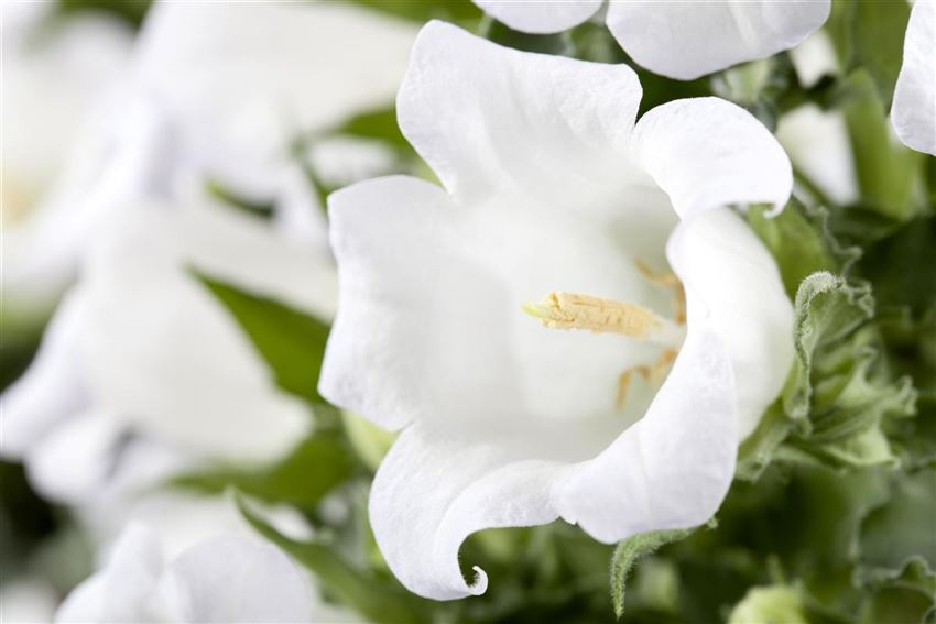 Die Blüten der Glockenblume blühen weiß oder in allen erdenklichen Blau- und Violetttönen. Und dabei machen die Blüten dem Namen der Pflanze alle Ehre. Die Glockenblume besitzt je nach Art glocken-, röhren- oder sternförmige Blüten. Die Blütezeit der Glockenblume liegt zwischen Juni und September. Das macht sie zu einer Pflanze mit einem unschätzbaren Wert für den Garten. Ihren Blüten verdankt die Glockenblume auch ihren botanischen Namen, Campanula. Das bedeutet aus dem Lateinischen übersetzt so viel wie „Glöckchen“. Eine weitere Besonderheit: auch die Anordnung der Blüten ist von Art zu Art unterschiedlich. Mal sind die Blüten als Rispen oder Trauben angeordnet, oft aber auch einzeln.