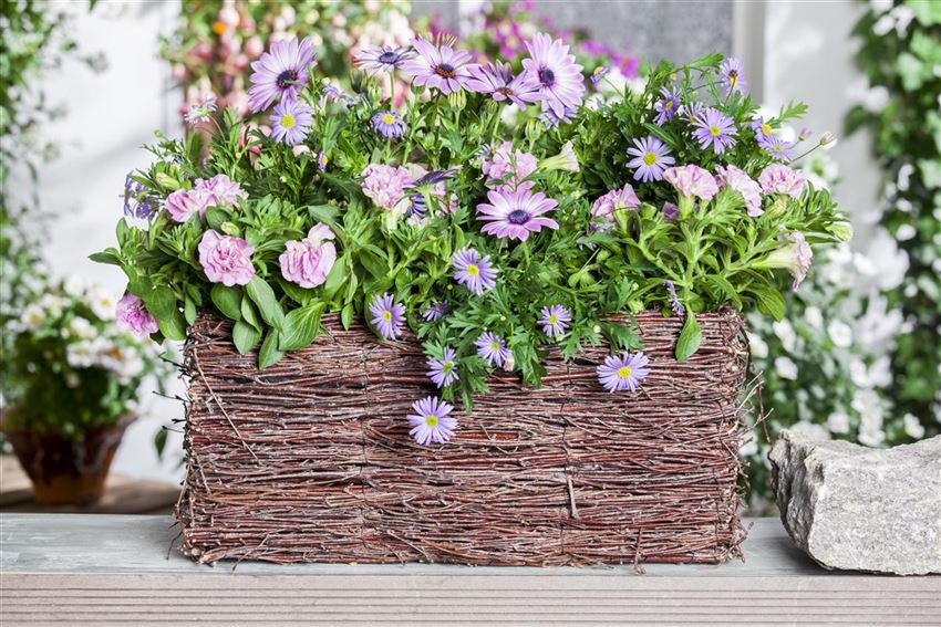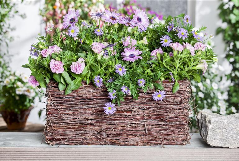 Eine Vielzahl von Balkonpflanzen kann in den Kübeln bunt zusammengemixt werden, was besonders schön aussieht. Jedoch muss hier bei der Auswahl darauf geachtet werden, dass sie die gleichen Bedürfnisse haben und nicht sonnen-und schattenliebende Blumen zusammenstehen. Auch der Wasserbedarf sollte ungefähr gleich sein. Ansonsten kann man sich hier mit getrennten Pflanzgefäßen behelfen.
